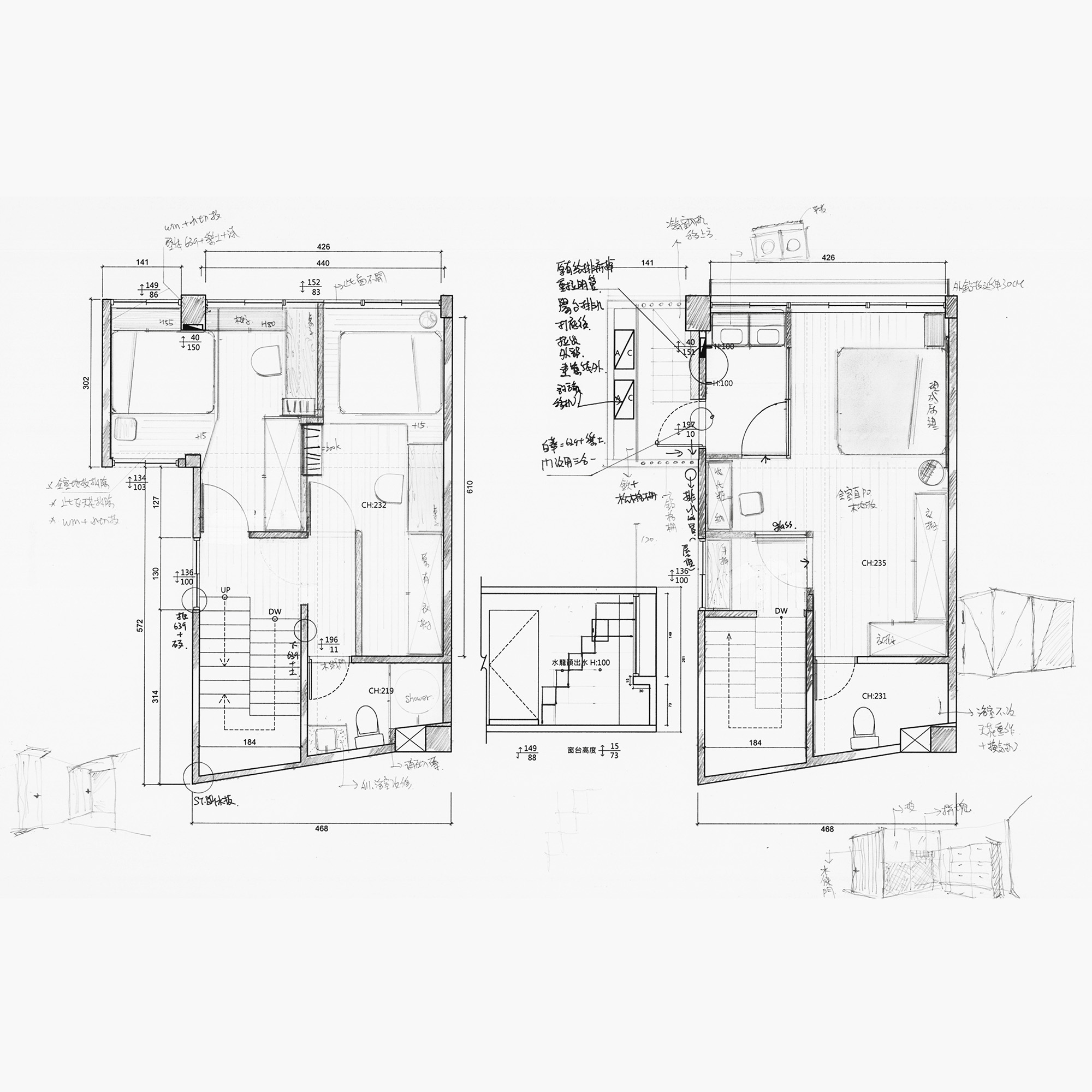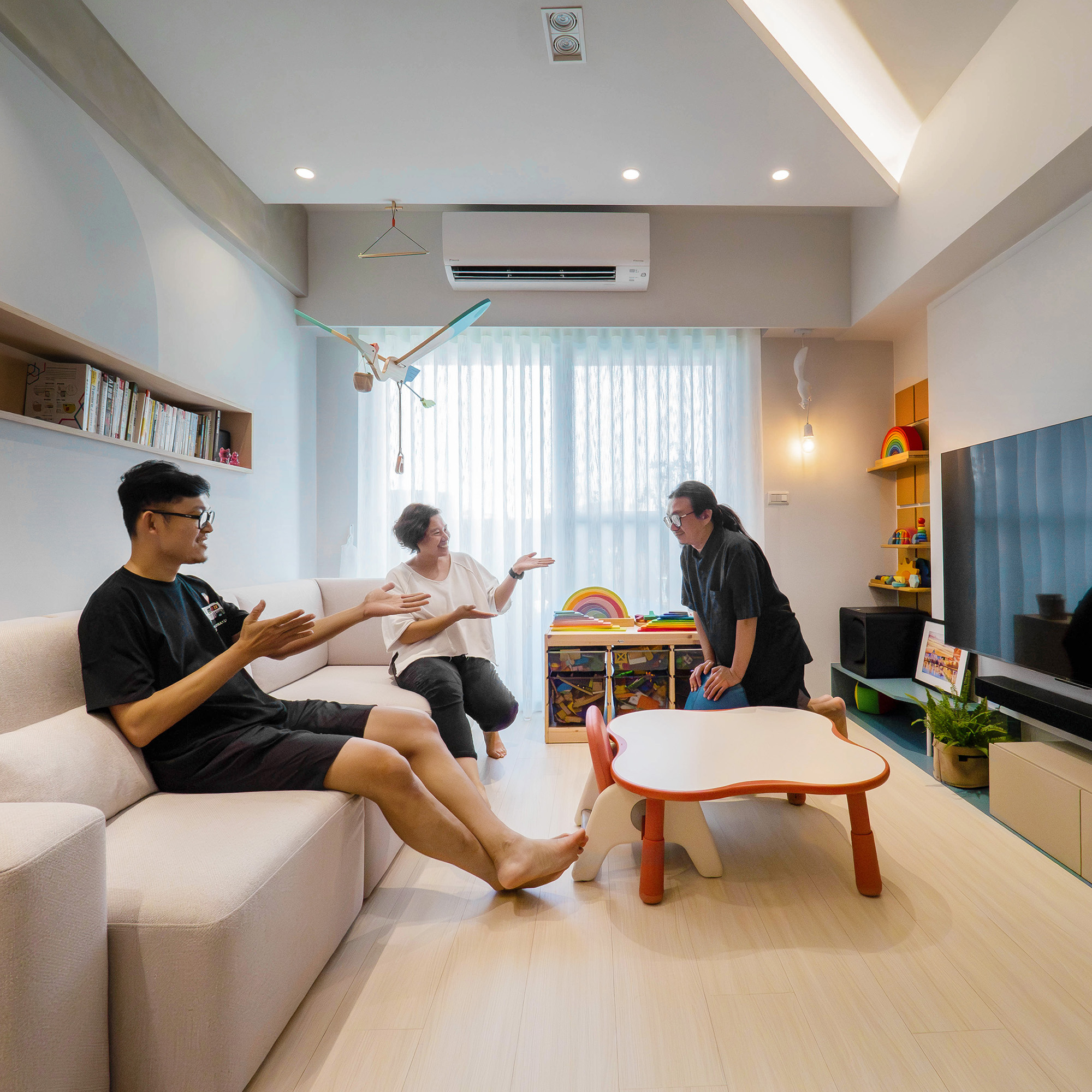 https://youtu.be/4i3uchfNhlw 【半毛胚。個性住宅EP4】厝佇遮。自由蹛佇遮類型|半毛胚位置|台中。七期面積|60坪 / 198m²設計|TACC太工創作設計『 審視你所面對的空間形樣,這很重要; 在與使用者真實面對內心時,你自然會發現許多的枝節 』 剛把原始圖拿在手現勘時,有點又喜且驚, 面積好大、視野真好、採光優、好無敵的房子, 但定睛仔細又一瞧好像不大對勁。 如蝴蝶展翼般的屋體面積, 縱橫不對等的將領域一分二; 近乎全面的外牆開窗,很棒也夠亮! 但可能誤讓配置有了限制; 原來的建商隔間很妙,高聳的牆顯得閉鎖, 無光的廚房、廊道房間分配不妥...
