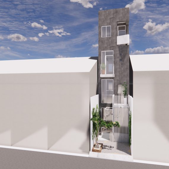 基地面寬實在是窄瘦,只有3.6米可供建築,每層面積只能撐在10坪上下;屌吧~我光一隻樓梯就想超久,該怎繞、維持樓版寬鬆 等….。還考量到未來預算,(他們真沒想真的得去蓋間房子)最終,我們設計出這間溫柔又帶點個性的小屋子,完全可以容納他們一家四口,設備位置、晾衣空間、空調隱藏、休閒團聚,一應俱全~