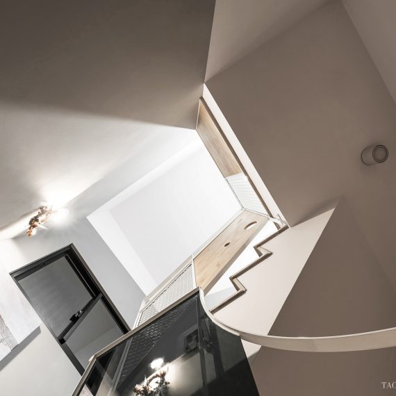 客廳與餐廳的關係,用了一塊純水泥折板串接起來,