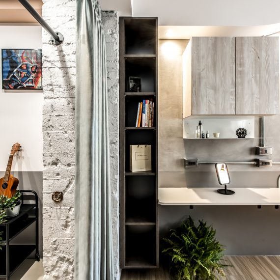 特地訂製的開架衣櫃讓她隨意去佈置。