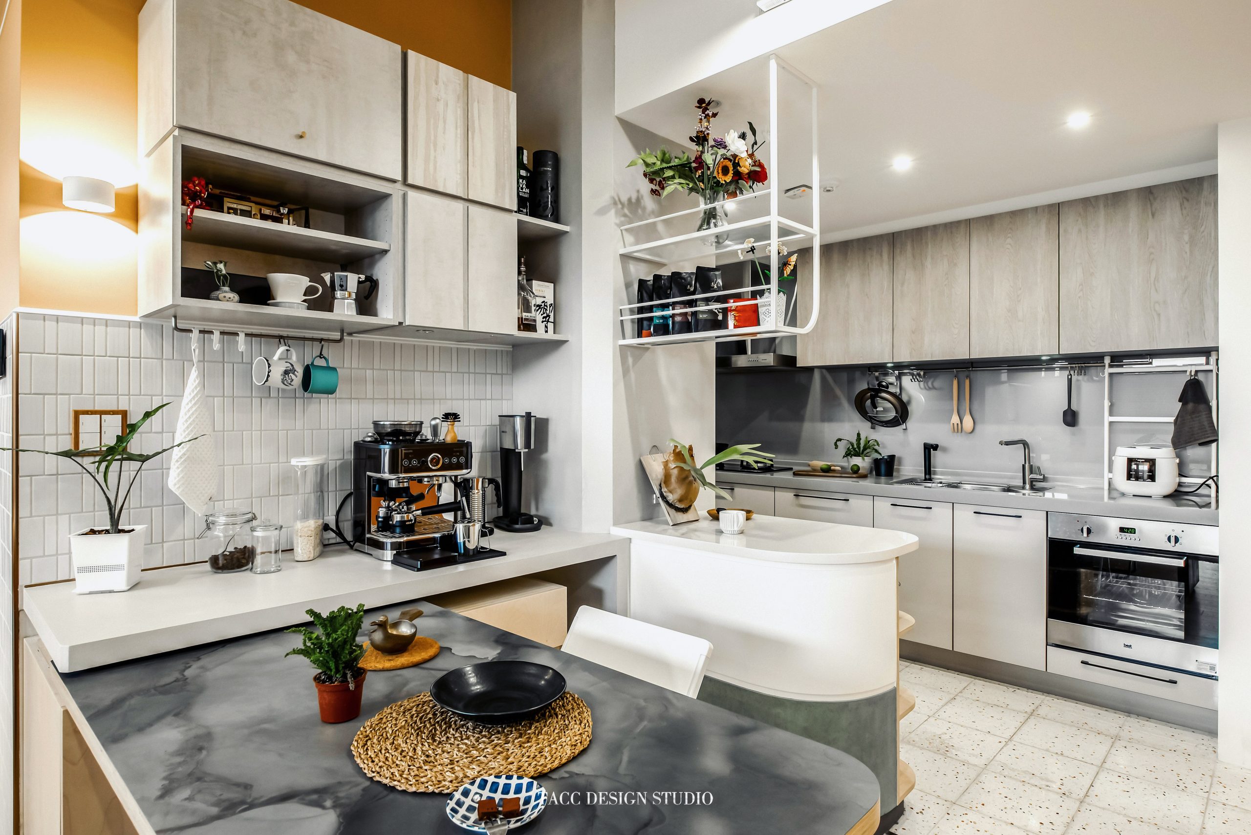 構築|磨石子磚、fenix板、訂製鐵件、多變馬賽克
